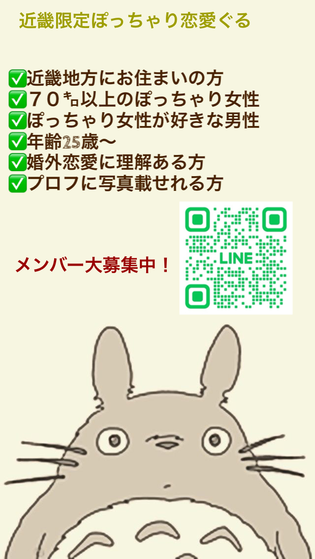 ★参加条件★ ✅近畿地方にお住まいの方 ✅70㌔以上のぽっちゃり女性 ✅ぽっちゃり女性が好きな男性 ✅年齢25歳〜 ✅婚外恋愛に理解ある方 ✅プロフに写真載せれる方📷 ✅報連相できる方 ✅ROMにならない方 ✅通話やオフ会に参加可能な方