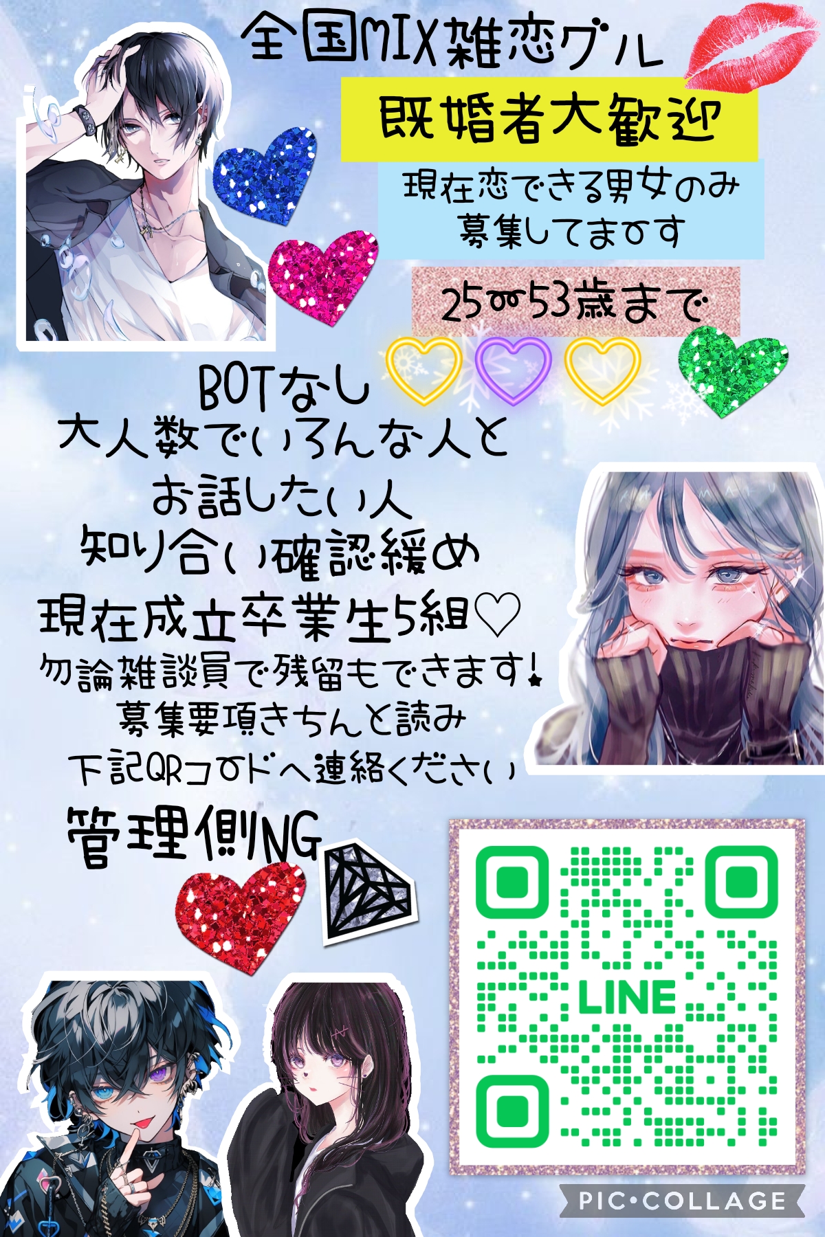 🎀管理側NG 募集係も含みます 🎀ブラリス、知り合い確認自信ない人 大丈夫です 簡単な知り合い確認になります 🎀メンヘラかまちょさんOK 🎀25~53歳前後くらいまでの人 🎀他グルと掛け持ち可 🎀恋あり、なし選べます 枠はないです 🎀大人数でも馴染める人(メンション迷子は気にしてないです)