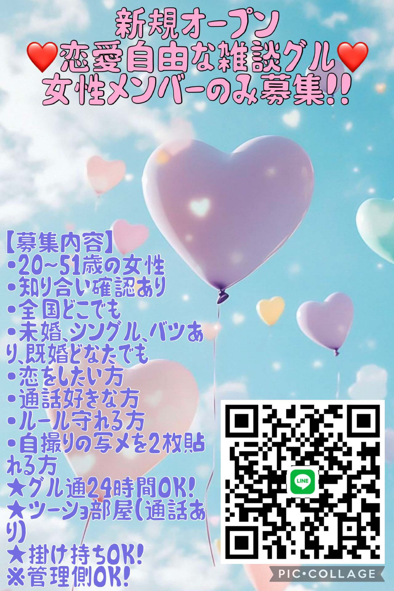 ♡恋愛自由の雑談グル♡新規OPEN!女性メンバーのみ募集!