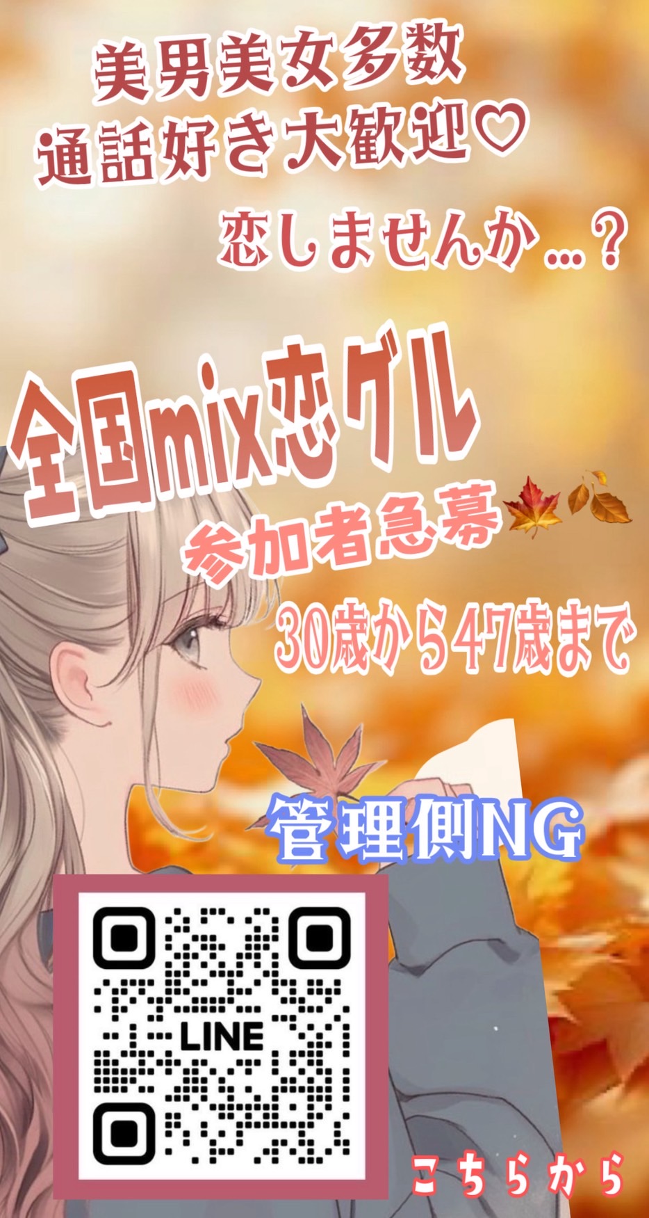 🍁🍂 全国mix恋グル🍁🍂 member募集!! 冬になる前に恋愛しませんか(∩´∀`∩)💕 積極的な方大歓迎♡ しっかりサポートします✨️