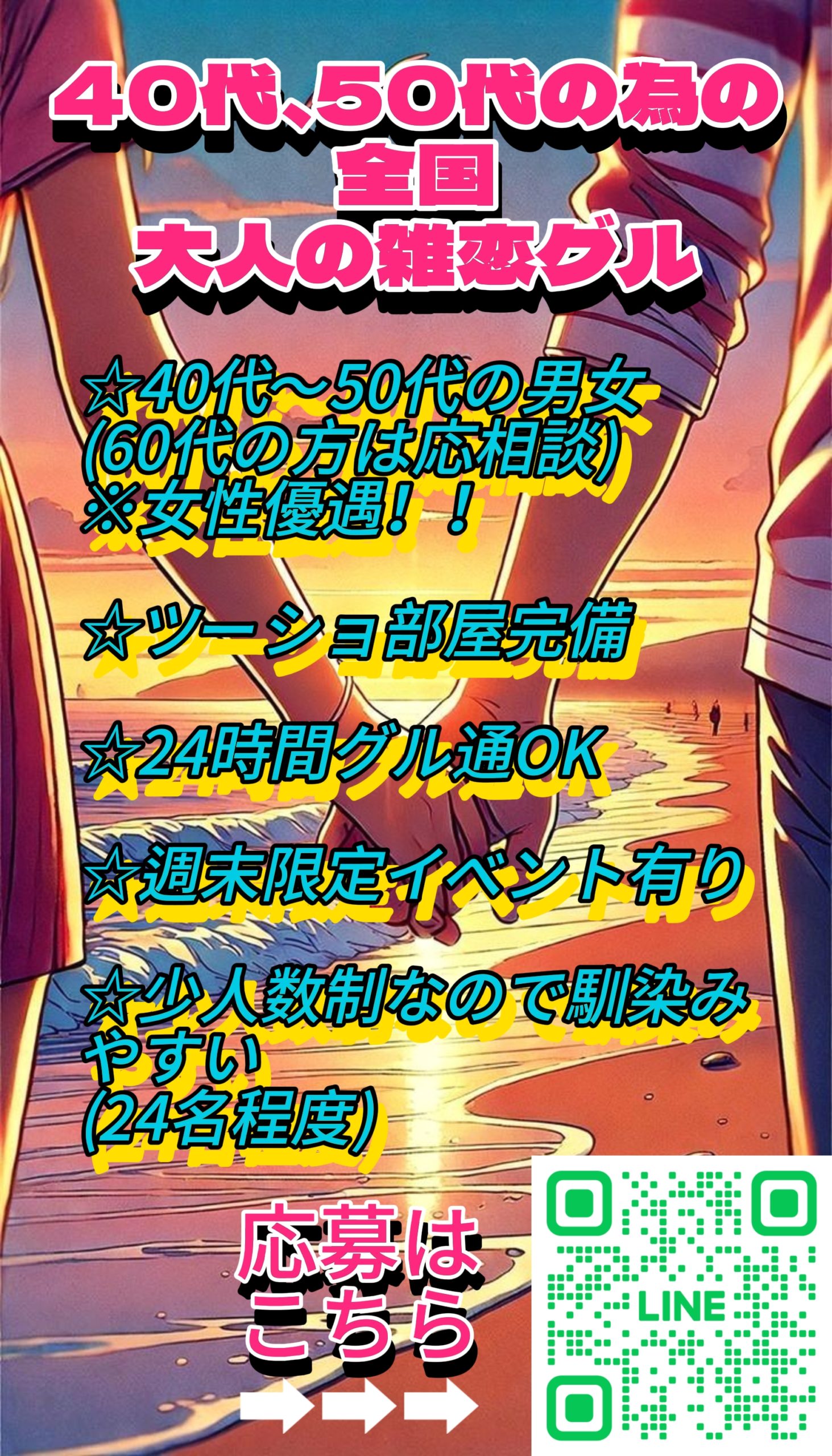🩷近場で恋人が欲しい方待ってます! ️🩵リアルの友人欲しい方大歓迎! 🩷 男女 既婚未婚問わず参加しています。 ️🩵年齢制限ありません。 🩷恋愛やツーショは有り無し選択式です。 ️🩵月数回オフ会があります。 🩷オリジナルイベント·ゲーム多数。 . . . ✨✨✨イベントゲーム参加する方✨✨✨ ココから参加希望してね↓↓↓ https://lin.ee/taiKnXJ 詳しくはリンク先を確認してね(*´ω`*)