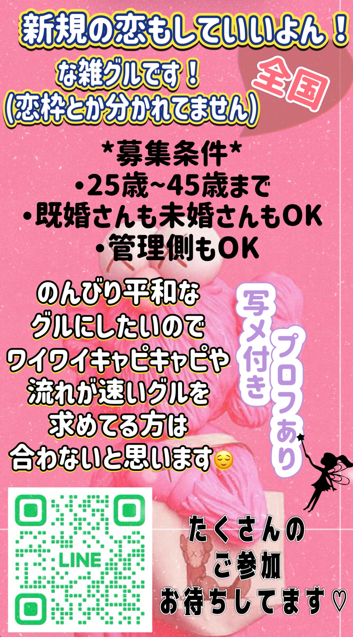 🌈全国雑談&通話グル🌈 音楽好き!映画好き!アニメ好きな新しい仲間募集中🎇 🔶🔶🔶🔶🔶🔶🔶🔶🔶🔶🔶🔶 現在20名、30代の男女中心で活動中です!20代40代も大歓迎🙆♀️ トーク中心の多種多様な趣味を持つ仲間の集まりです! グループトークが好きな人! 仲間と好きなことを語り合いたい人!大歓迎です! 🔶🔶🔶募集内容🔶🔶🔶 🧚♀️女性 20歳~45歳🧚♀️ 🧚♂️男性 23歳~45歳🧚♂️ 新たに 男性5名、女性5名、計10名 募集します! 🔷🔷🔷大歓迎🔷🔷🔷 ♪トーク・通話好き♪な人! ♪個性的で面白い人♪ ♪アニメ・音楽・映画好き! ♪マナーを守れる♪人! ♪長く続けられる♪人! ♪人見知りさん、初心者さん! ♪日中暇な人、夜中暇な人! 🔶🔶🔶お断り🔶🔶🔶 ◆解体屋・荒らし・即退会・ROM! ◆無断追加・後追い追加! ◆裏グル、引き抜き! ◆ルールを守れない人! 🔷🔷🔷その他🔷🔷🔷 🌱プロフと確認用に写メ1枚必要です😁 🌱グル通24h誰でも上げてOK👍 🔶🔶🔶参加方法🔶🔶🔶 https://line.me/ti/p/4-SiLGBnGQ ⬆こちらのURLまたは、QRコードからコメントしてください! 🔷🔷🔷🔷🔷🔷🔷🔷🔷🔷🔷🔷 さぁ!みんなおいでー!