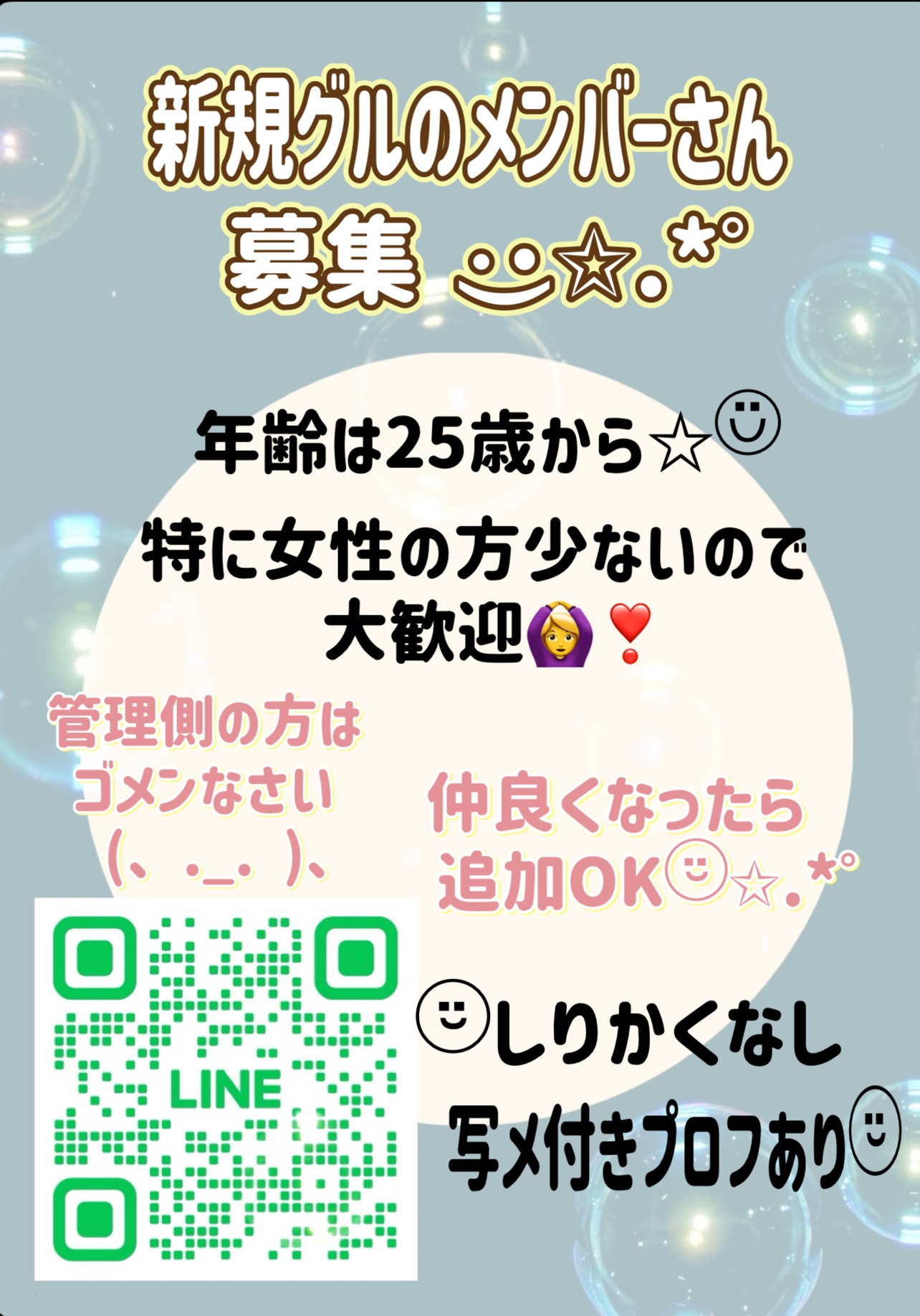 軽い知り合い確認あり お顔の写メ出せる方 🌸男女大募集年齢はQR見てね😊 当グルに入りたいさんは下記のQRに御応募してくださいね( *´︶`*)
