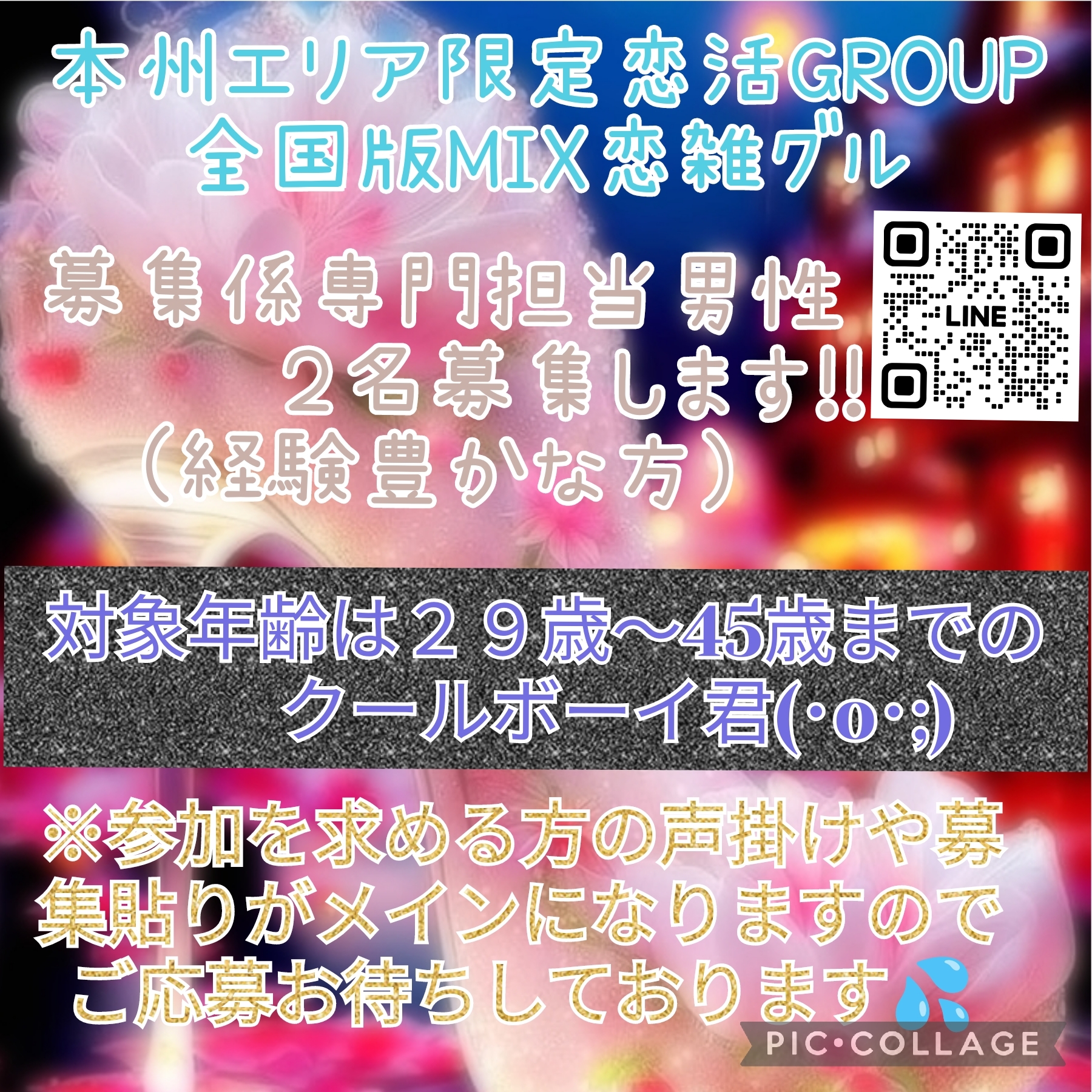 (募集内容) ✡年齢26歳~45歳の男女 ✡既婚未婚問わず ✡婚外に理解ある方 ✡参加率が良き方